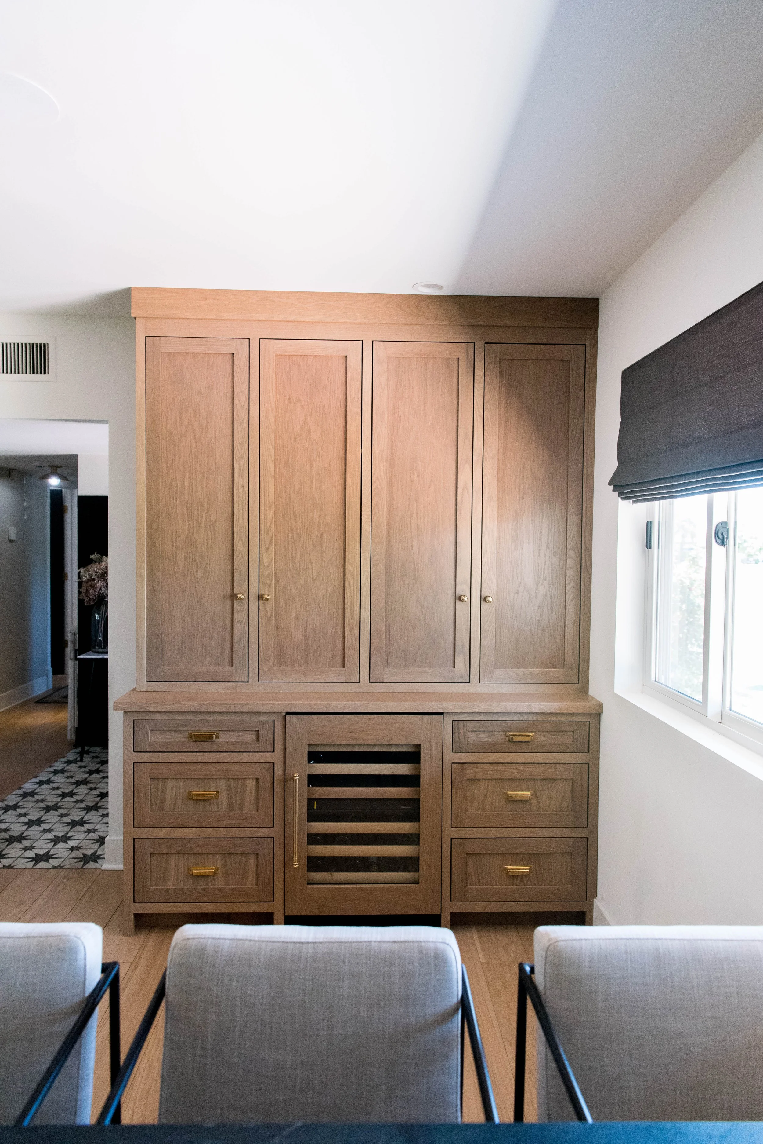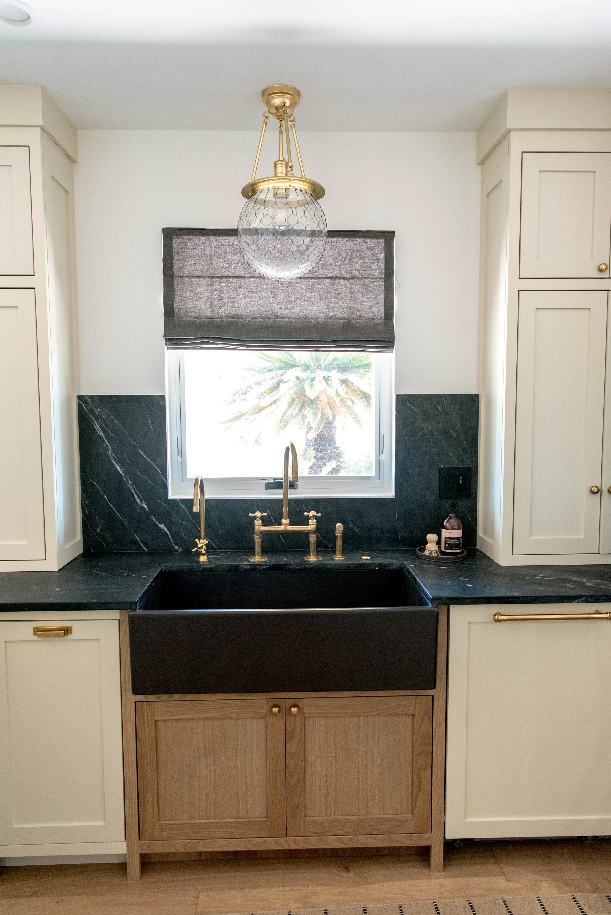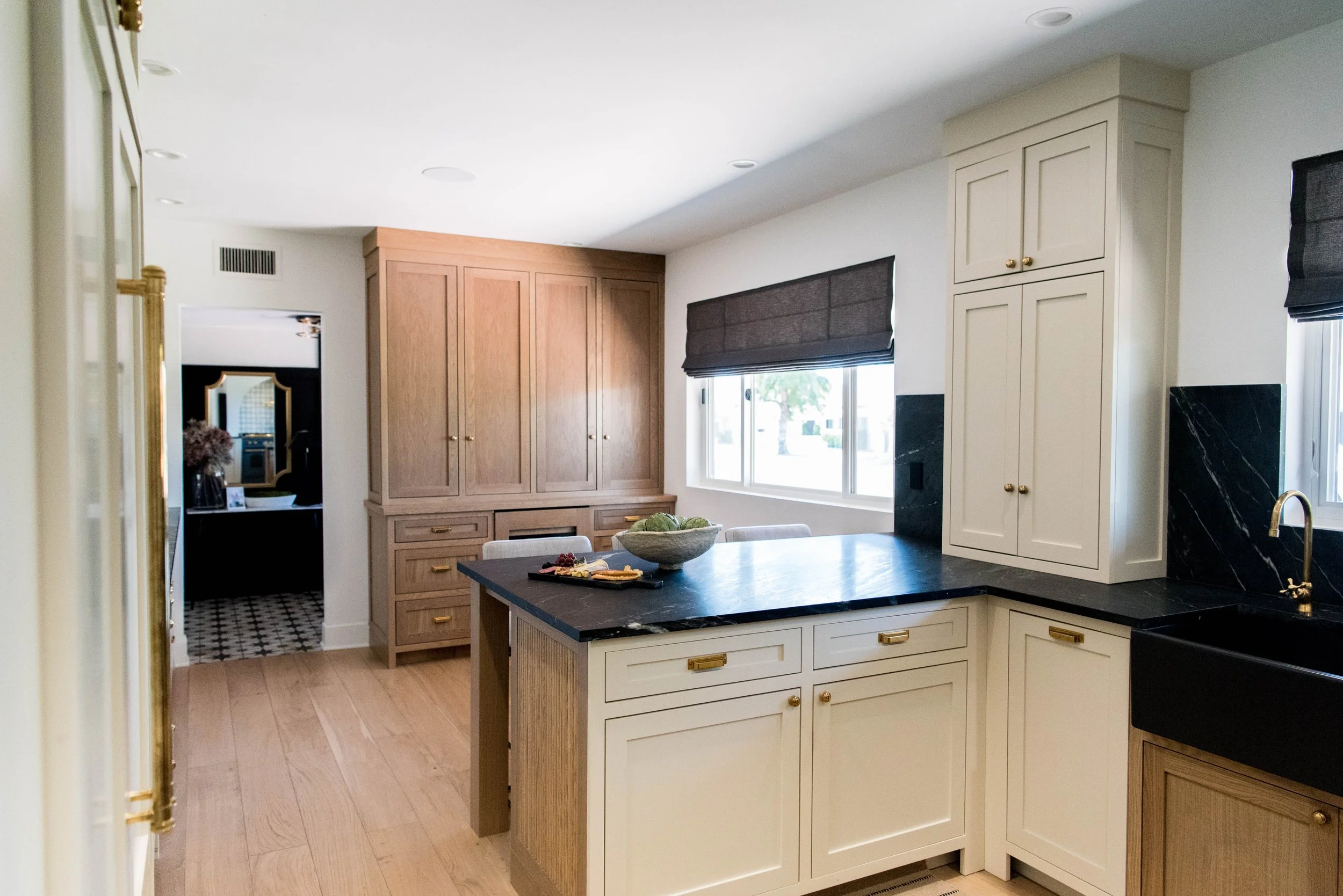 We added automatic shades on the windows from Budget Blinds (in Scottsdale, AZ) and are very impressed with them. There is a battery-operated panel that inserts right into an electrical wall plate, along with an app on your phone. We also put blackout versions in our bedrooms and thoroughly enjoy them. Check out all the kitchen details below.