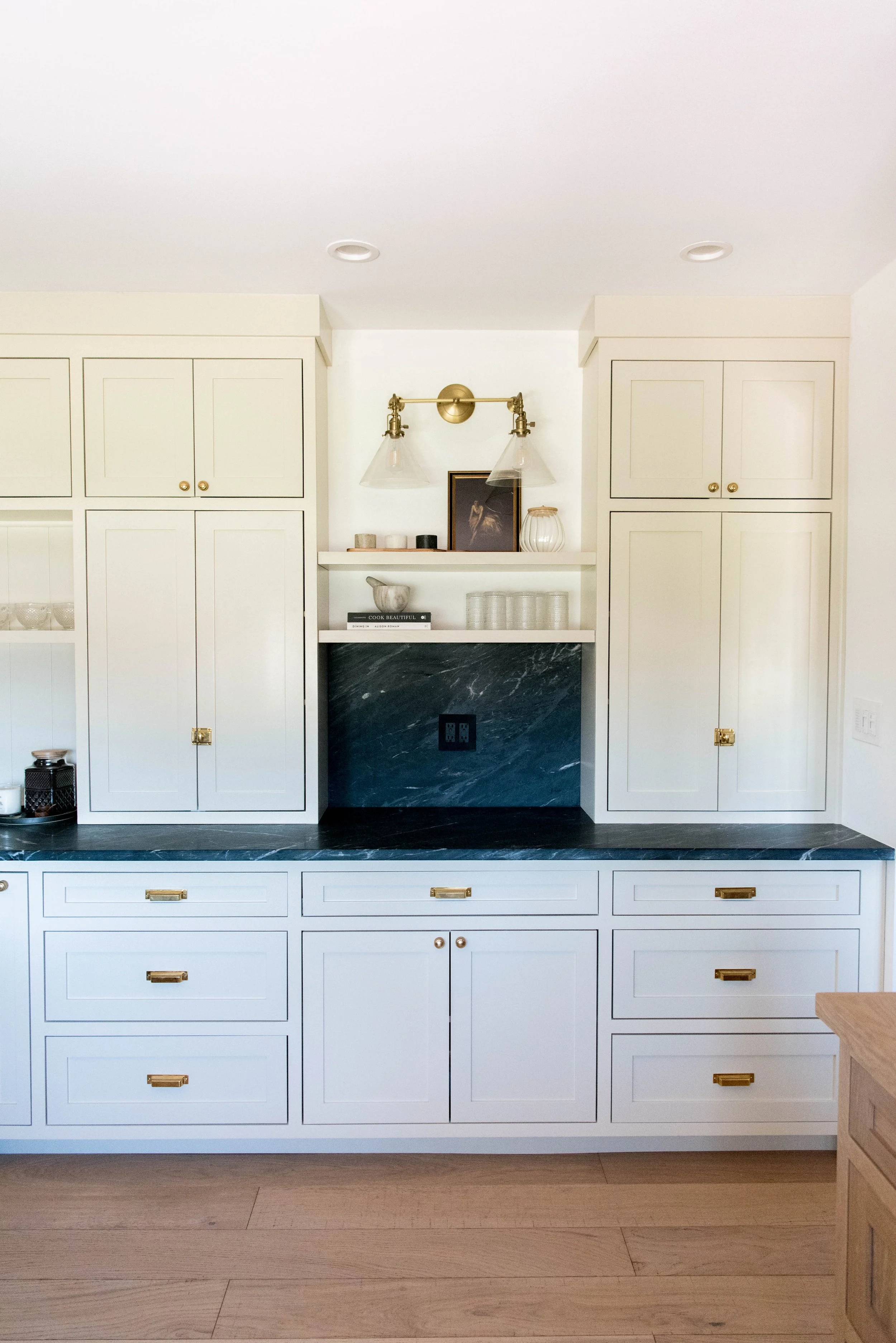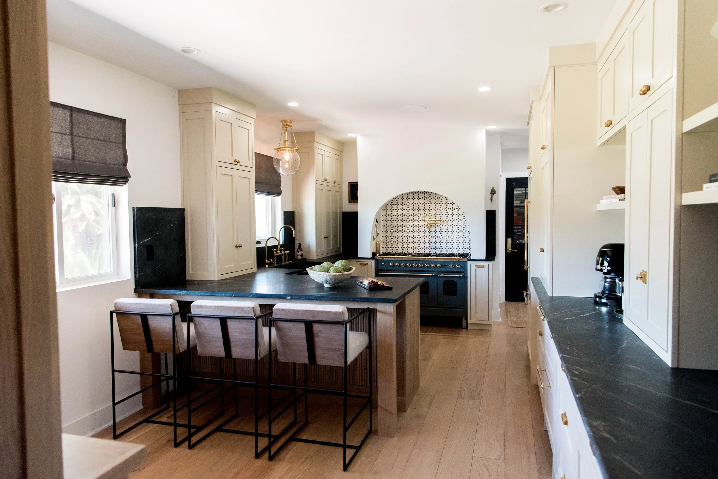 I wanted this kitchen to have an organic feel to it with natural textures. I absolutely love the look of soapstone. So, I knew it had to be the main feature of the kitchen. Alongside that amazing blue grey Ilve stove, of course.